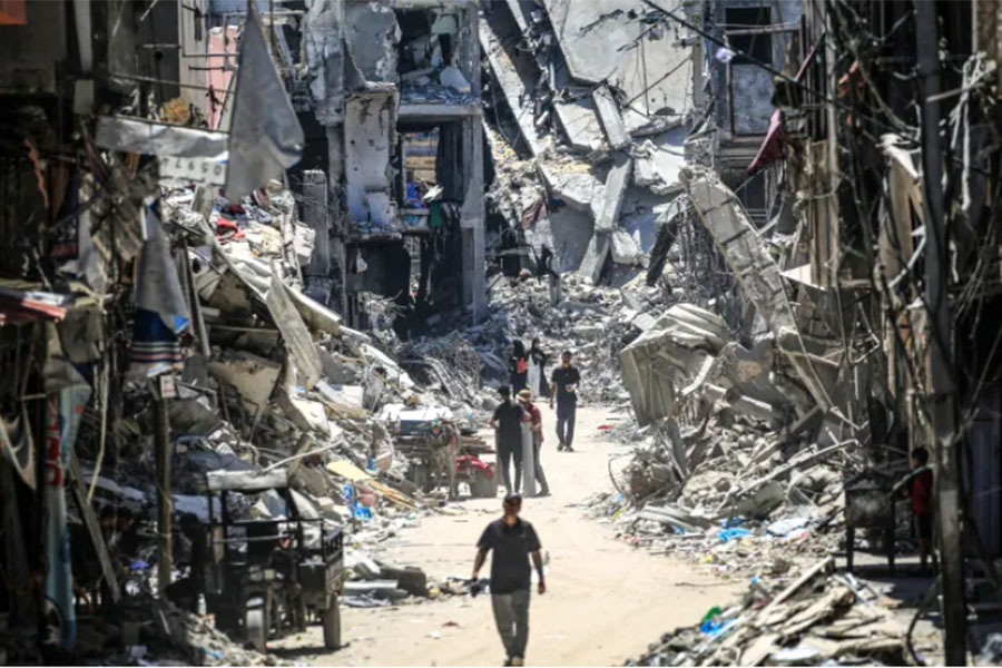 A maioria da população em Gaza foi deslocada várias vezes; estima-se que mais de 90% das casas estão danificadas ou destruídas; os sistemas de saúde, água, saneamento e higiene entraram em colapso; e especialistas em segurança alimentar apoiados pela ONU declararam “estado de fome” em Gaza.
