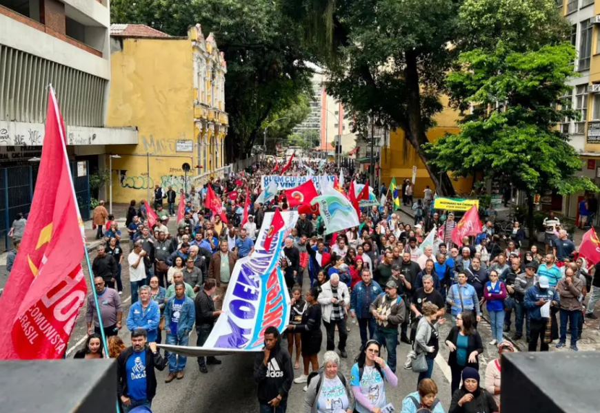 Em sua fala durante o ato, o deputado federal Glauber Braga (Psol) fez duras críticas a Claudio Castro (PL) e afirmou que o Rio de Janeiro tem o pior governador do Brasil “que tenta agora entregar tudo aquilo que é patrimônio do estado”.
