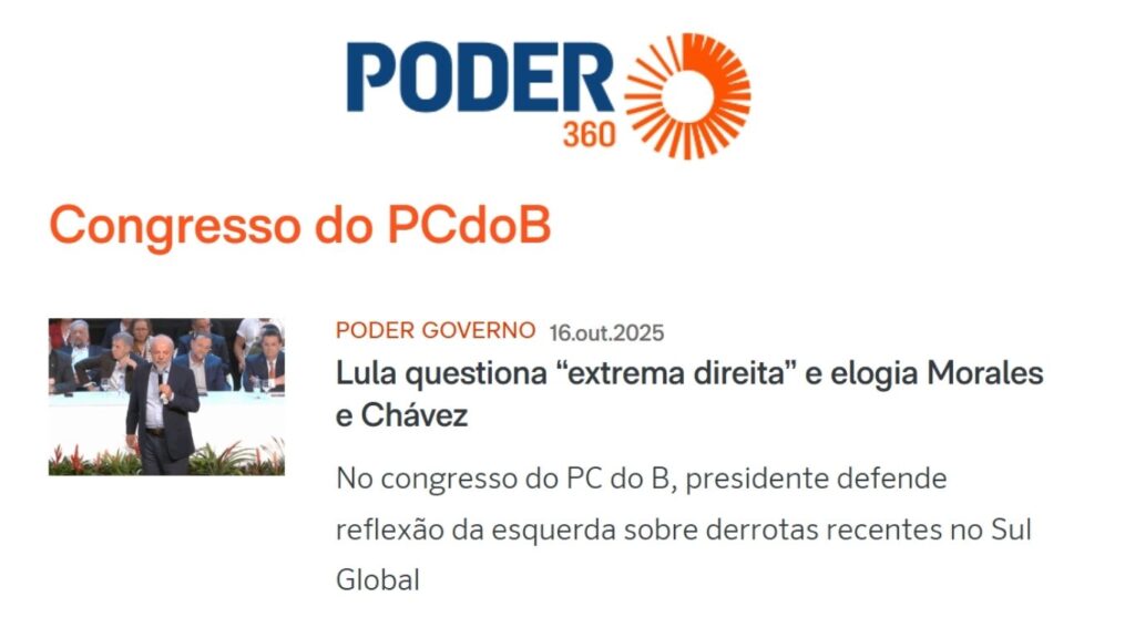 As notícias veiculadas pelo Grupo Folha da mesma forma sublinharam a participação de Lula no Congresso do PCdoB. O Uol enfatizou trechos sobre o pedido de união da esquerda para ‘vencer’ nas redes sociais, além de passagens sobre formar maioria no Congresso Nacional em 2026.