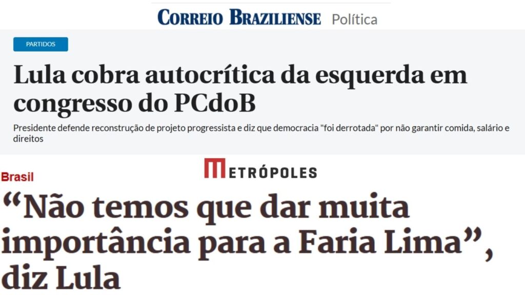 O Brasil de Fato trouxe manchete que pontuou a crítica feita ao mercado financeiro, entendido pela ‘Faria Lima’, bem como sobre a necessidade de melhoria na comunicação para alcançar o povo.