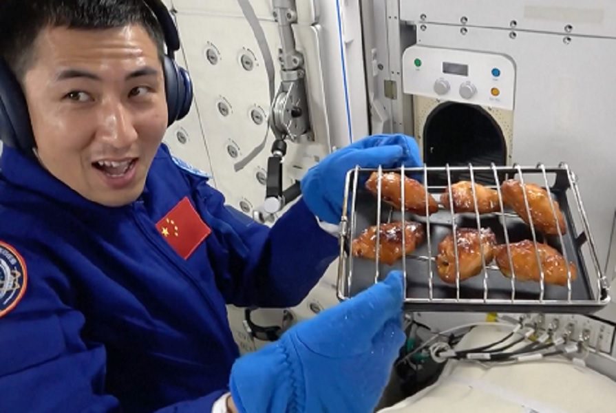 Vídeos divulgados pelo Centro de Astronautas da China (ACC) mostram os membros das tripulações desfrutando do churrasco espacial. Depois de grelhar por apenas 28 minutos, os taikonautas – como os chineses chamam seus astronautas – estavam com suas asas de frango prontas para serem saboreadas. Já os tripulantes Wang Jie e Wu Fei aprontaram um bife com pimenta preta para Chen Dong, o comandante da missão Shenzhou 20, informou o Global Times.