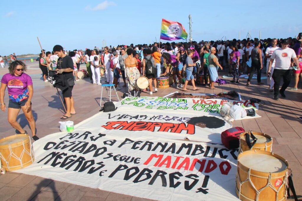 No Recife, a manifestação se concentrou no Marco Zero e seguiu até o monumento a Zumbi no Pátio do Carmo. Ato organizado pela Articulação Negra de Pernambuco defendeu reparação histórica, bem viver e fim da violência estatal.