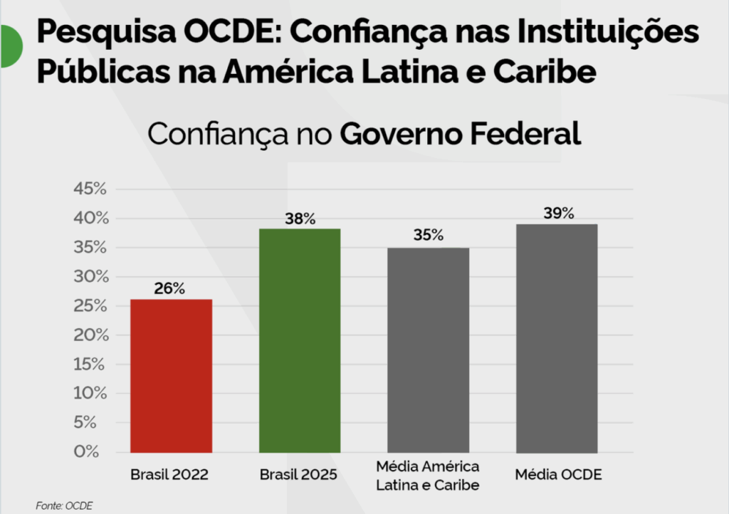 Para a OCDE, reconstruir o Estado é reconstruir o futuro democrático. A confiança pública no governo é, ao mesmo tempo, resultado e insumo para o desenvolvimento. No caso brasileiro, a melhora dos índices reflete políticas de transparência, combate à corrupção e ampliação da voz cidadã.