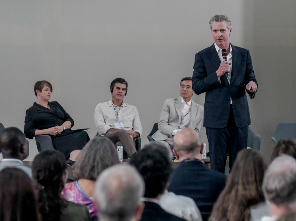 O democrata fez questão de estar presente na Conferência que debate as mudanças climáticas, acentuando sua oposição a Donald Trump. O governador é alvo constante de críticas do presidente dos EUA, que passou a ameaçá-lo de ser preso por não impedir manifestações em Los Angeles contra as políticas de imigração adotadas no âmbito federal. Trump chegou a enviar tropas da Guarda Nacional para o estado, o que gerou uma crise de poderes.