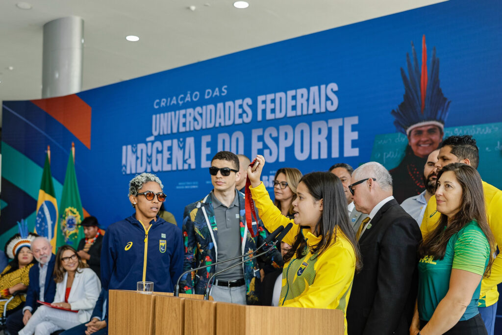 O ministro do Esporte, André Fufuca, celebrou as conquistas promovidas pelo governo federal: “Hoje o Brasil corrige um erro não de anos, mas um erro secular, quando cria a Universidade Federal Indígena e cria a universidade dos maiores embaixadores que o Brasil tem, que são os nossos atletas. Eu costumo dizer que o atleta é o melhor embaixador para levar o nome da nossa nação. A dedicação que eles têm no dia a dia, na luta diária, eles precisavam, sim, que o governo federal os abraçasse”, ressaltou o ministro.
