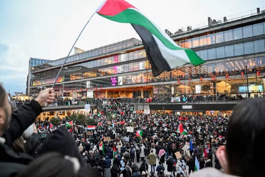 Portando bandeiras palestinas, eles também exigiram o fim do genocídio em Gaza e alertaram que a fome deliberada e o deslocamento forçado de civis constituem graves crimes de guerra, e instaram o governo sueco e a comunidade internacional a tomarem medidas urgentes para pressionar por um real cessar-fogo imediato e garantir a entrega irrestrita de assistência humanitária.