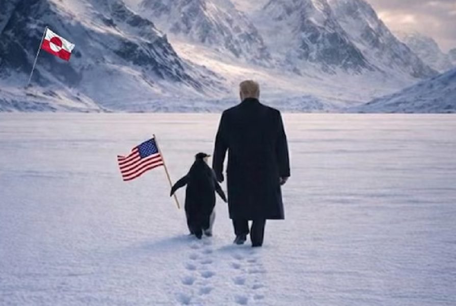 Depois de chamar a Groenlândia de “Islândia” sete vezes em seu belicoso discurso de anexação em Davos, o presidente Donald Trump postou no X uma montagem em que é mostrado caminhando ao lado de um pinguim que empunha uma bandeira norte-americana, numa paisagem gelada, onde, ao fundo, há uma bandeira da Groenlândia, tudo sob os dizeres “abrace o pinguim” – e imediatamente virou chacota nas redes sociais.