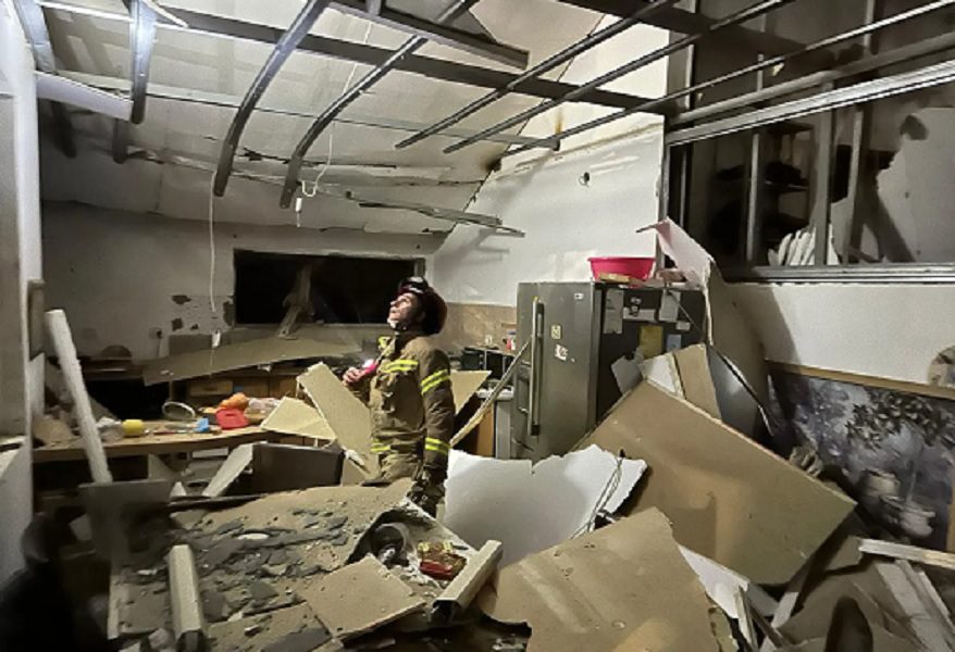 Bombeiros vistoriam prédio atingido em Dimona | Foto: Serviço de Resgate de Israel