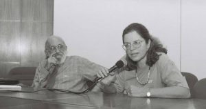 A professora Lisete Arelaro ao lado de Paulo Freire – Foto: reprodução/Feusp