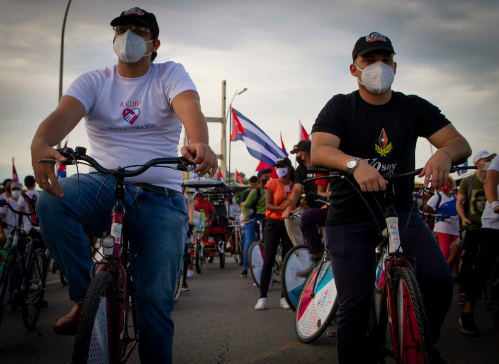 Os ciclistas predominaram na caravana que também repudiou o bloqueio norte-americano (Imagem: Resumen Latino)