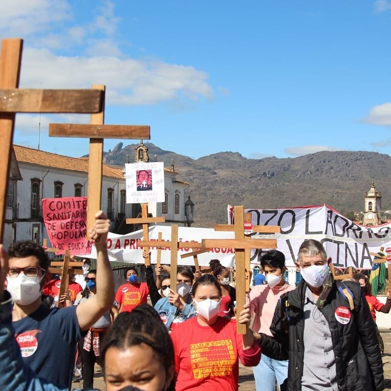 A liderança saudou os manifestantes em luta. “Veja a nossa juventude com sua convicção, veja a geração de 1968 com a vida dedicada à justiça e à liberdade. E nós todos temos um compromisso, sermos a memória dos que se foram, são 520 mil brasileiros e brasileiras, são pais, são mães, são avós, são filhos. Nós contaremos essa história derrotando o genocida, derrotando o bandido, derrotando aquele que trocou a vida dos nossos amores por 1 dólar”.