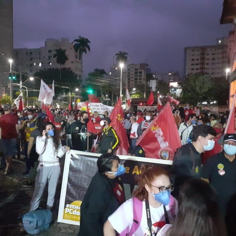 Em Santos, litoral paulista, o ato “Fora Bolsonaro Corrupto!” teve concentração na Estação da Cidadania, às 16h, e seguiu em passeata até a Praça das Bandeiras, no Gonzaga. O ato foi convocado por movimentos sociais e centrais sindicais e também contou com a presença de representantes do partido.