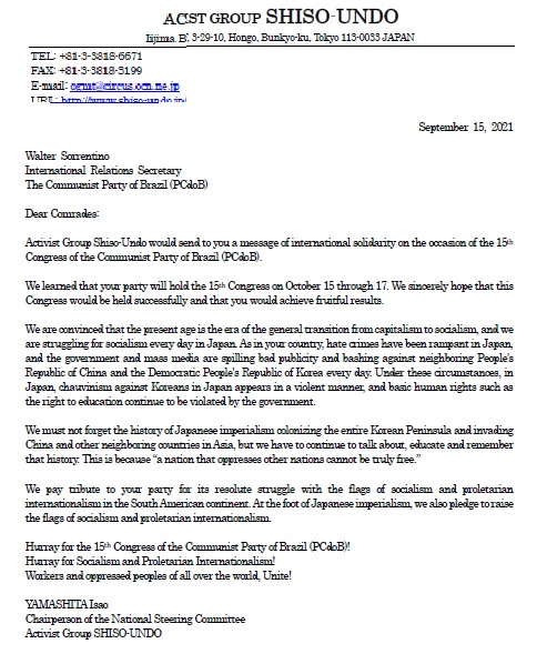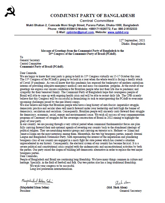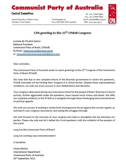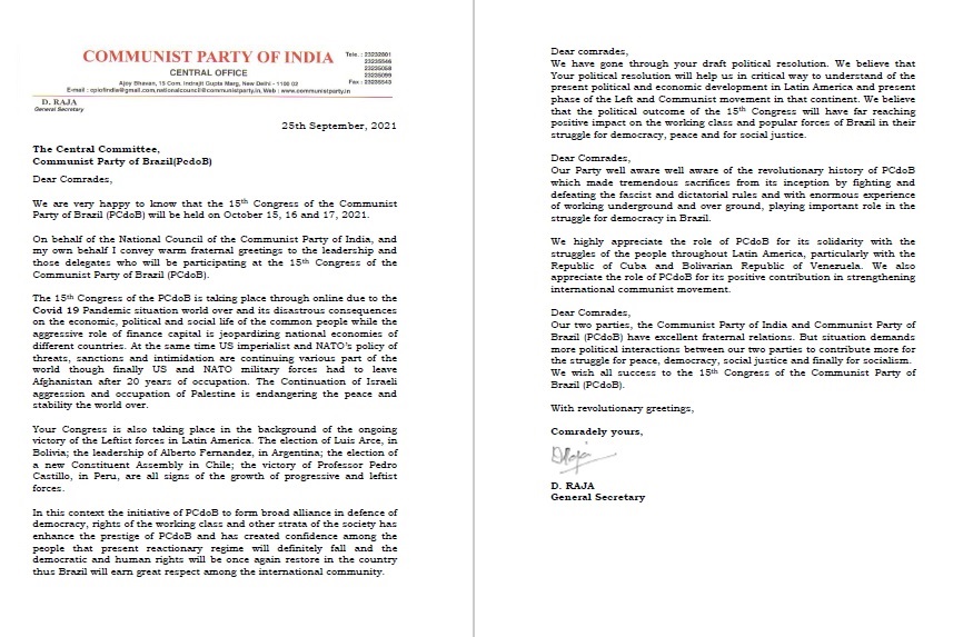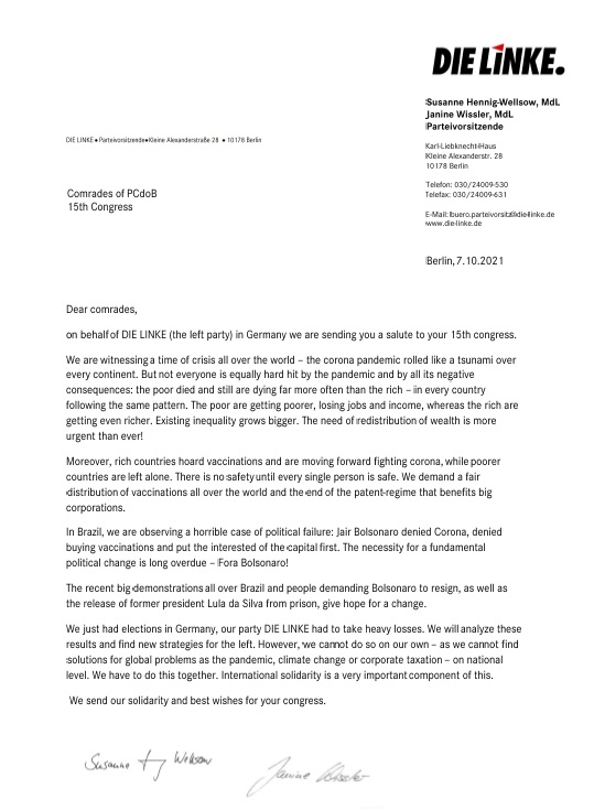 A dimensão do respeito que o Partido Comunista do Brasil desfruta entre os comunistas e a esquerda internacional pode ser medida pela ampla repercussão que alcançou a notícia sobre a realização do 15º Congresso do PCdoB. O Partido recebeu mensagens de congratulações, em vídeos e textos, vindas de 68 países e regiões de todos os continentes, enviadas por 89 partidos, organizações e articulações do campo progressista. Veja, abaixo, as saudações. As mensagens de vídeo em línguas estrangeiras foram legendadas em português.