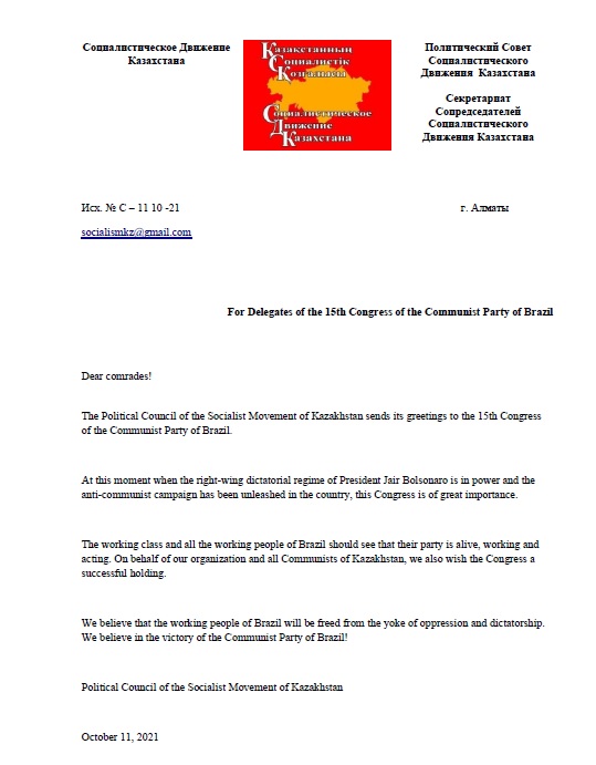 Mensagem Movimento Socialista do Cazaquistão PDF