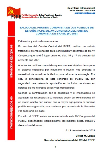 Mensagem Partido Comunista dos Povos da Espanha PDF