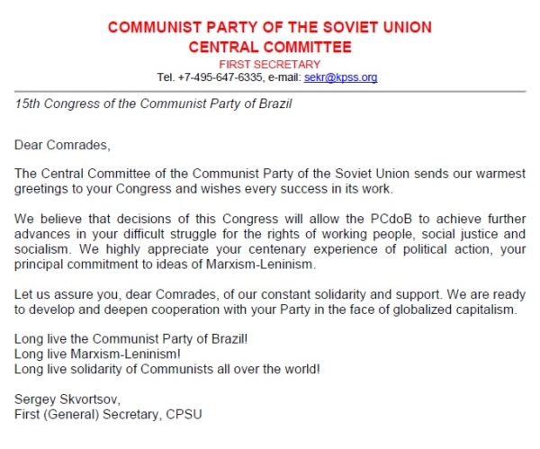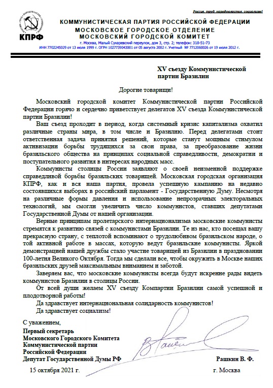 Mensagem Partido Comunista da Federação Russa – Comitê da Cidade de Moscou PDF