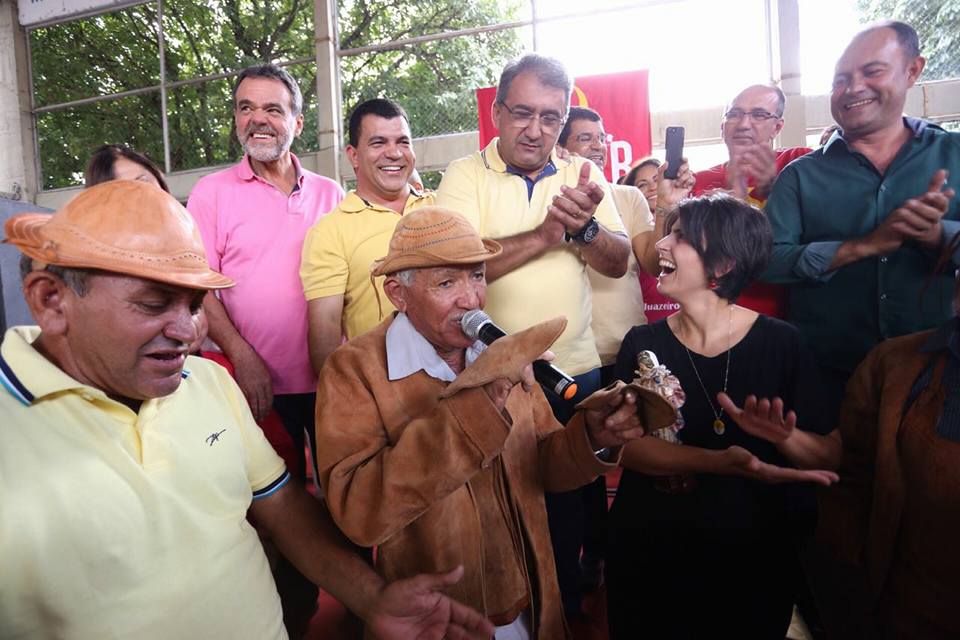 Em Juazeiro, Manuela foi recepcionada pelo presidente do PCdoB local, pré-candidato a deputado federal, Isaac Carvalho, que a presenteou com um chapéu e um gibão de couro, parte da vestimenta utilizada pelos vaqueiros do Sertão.