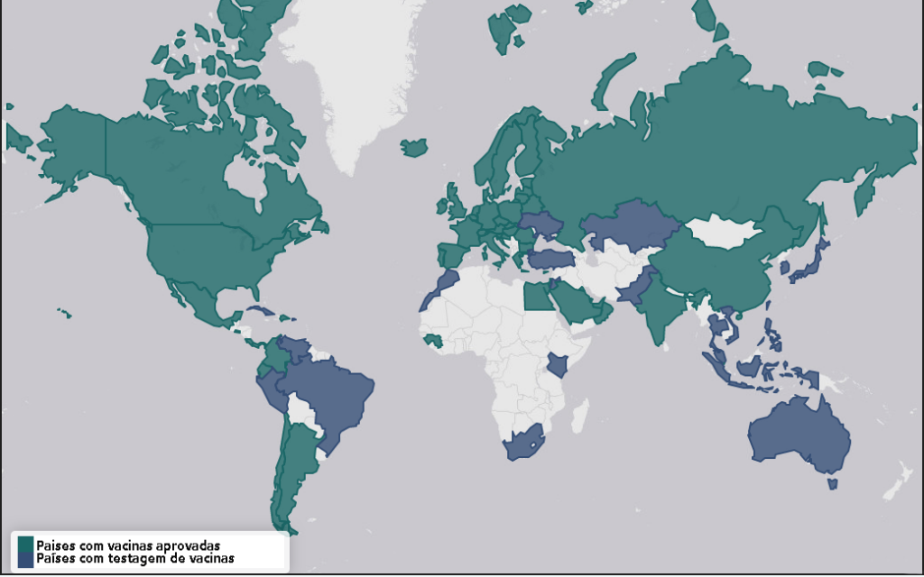 Dos 42 países que iniciaram vacinação, 36 são ricos e 6 de média renda. Países ricos fazem acordos bilaterias fora do consórcio Covax Facility, que garantiria distribuição equitativa.