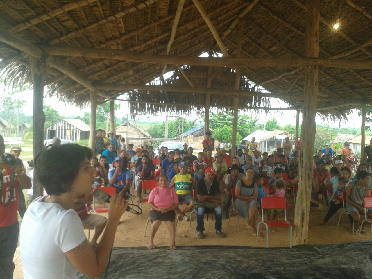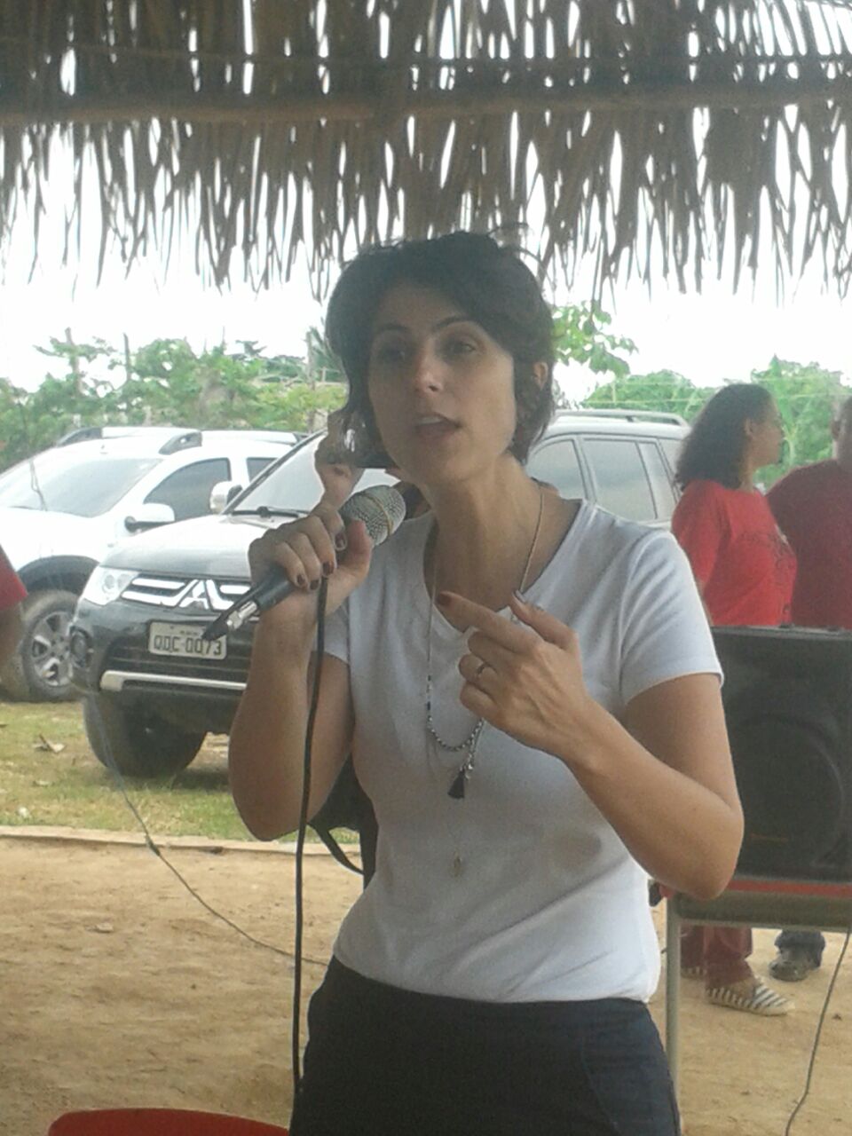 Mais tarde, Manuela faz uma visita ao acampamento Hugo Chaves do MST em Marabá – Pará, terra da Guerrilha do Araguaia de onde os latifundiários querem a desapropriação de 300 famílias, sendo mais de 150 crianças. “Mais do que nunca a luta pela terra é necessária. Pela Reforma Agrária!”