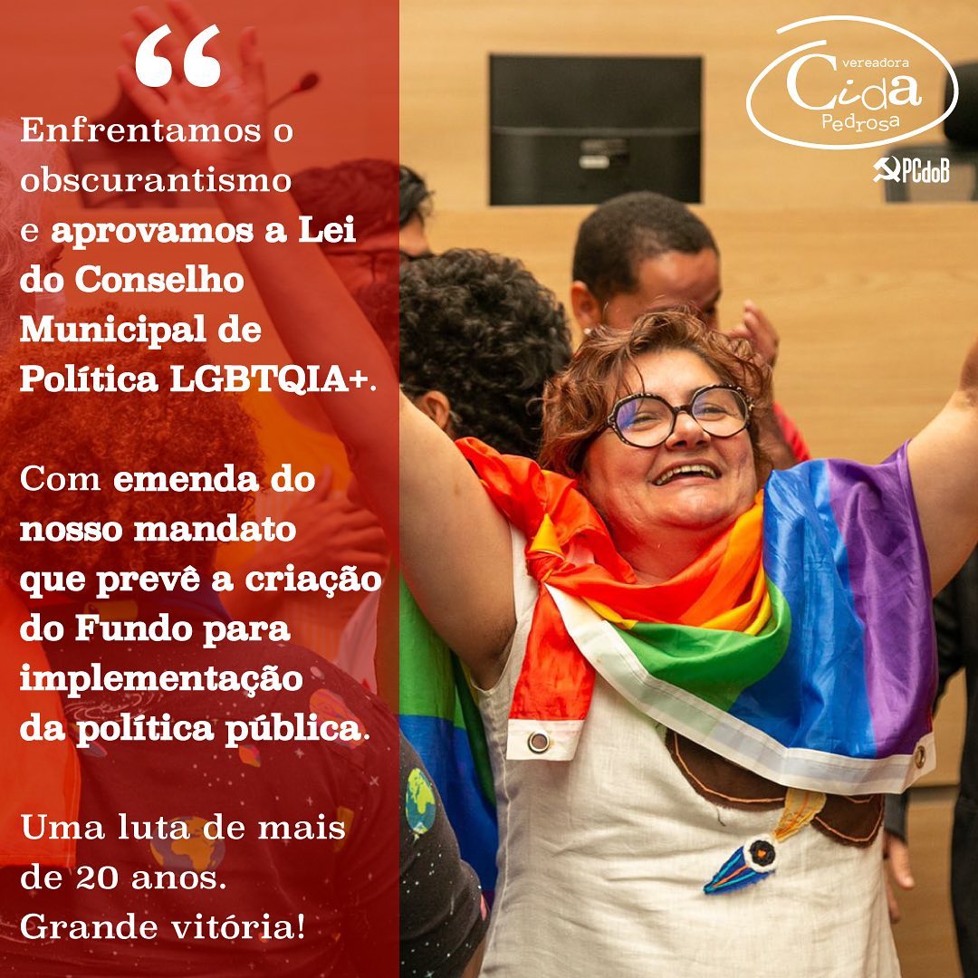 A Câmara Municipal do Recife aprovou nesta terça-feira (7) o Projeto de Lei que cria o Conselho Municipal LGBTQIA+. A vereadora do PCdoB, Cida Pedrosa, cuja emenda do mandato cria um Fundo para custear essa política, disse que este é um “avanço histórico; uma reivindicação de mais de 20 anos de lutas do movimento.”