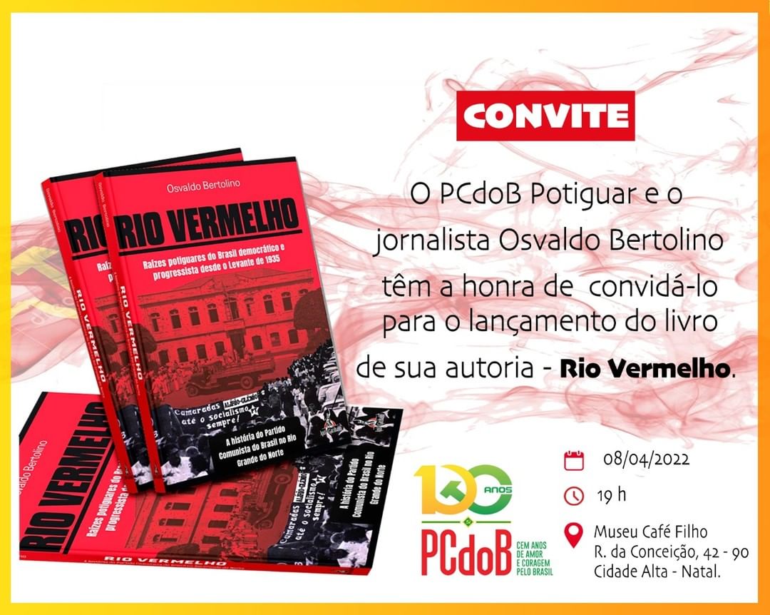 O Comitê Estadual do Partido Comunista do Brasil no Rio Grande do Norte (PCdoB-RN) convida para o lançamento do livro “Rio Vermelho: Raízes potiguares de um Brasil democrático e progressista desde o levante de 1935”. O evento será realizado nesta sexta-feira (08) a partir das 19h, nas dependências do Museu Café Filho, localizado no Centro Histórico de Natal. A obra é assinada pelo jornalista Osvaldo Bertolino e resgata fatos relacionados à história do Partido Comunista no Rio Grande do Norte. Em 2022, o PCdoB completa 100 anos de existência.